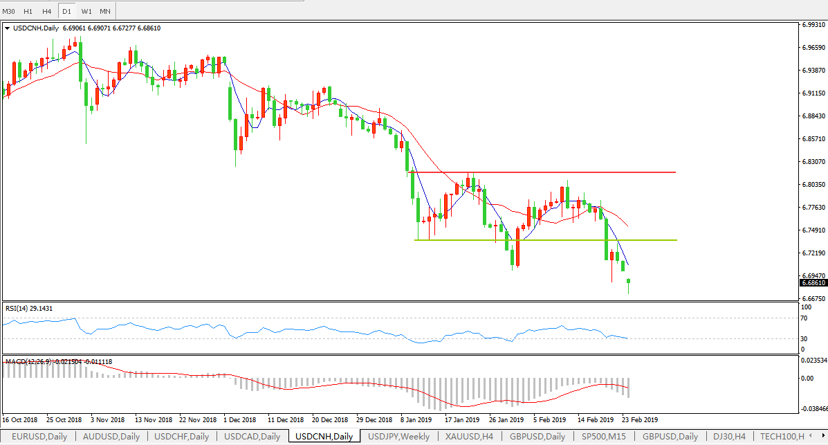 美元兑人民币USDCNH 日线图: