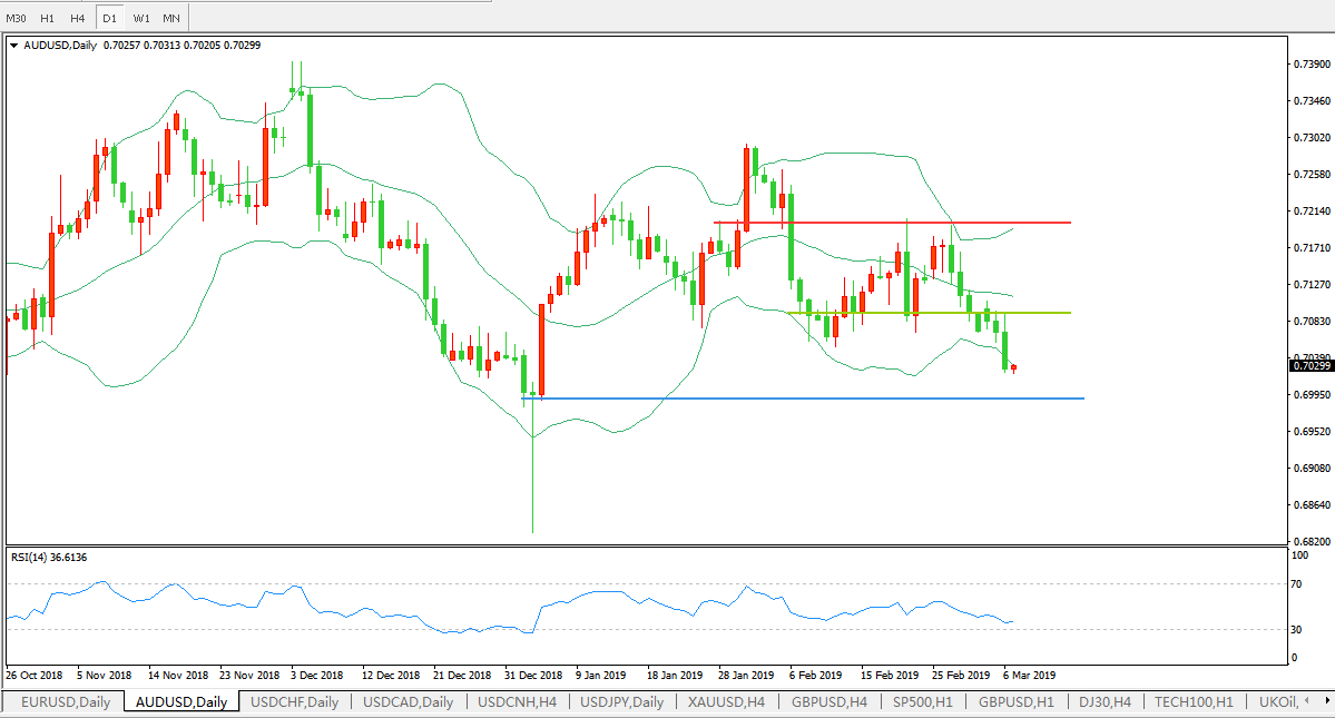 基本面分析:澳大利亚经济在2018年12月GDP增长了2.30%,这是自2017年6月以来的最低增速。2.80%的预期被大大忽略了,这意味着澳大利亚央行2019年3%的增长预期应该很快被下调。澳大利亚央行今年可能会降息。工资增长仍远低于6年前的水平(2018年第四季度为2.30%),而房价下跌导致的投资和建筑活动的大幅下降应该会引发相应的反应。1月份的产能利用率为81.40%,为2017年4月以来的最低水平。