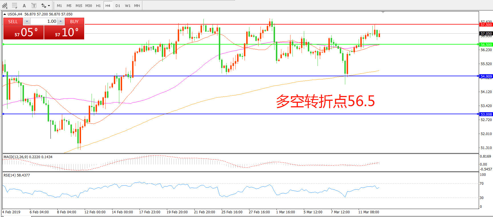 周二,美国石油协会API公布报告,美国上周原油库存减少258万桶至4.49亿桶,利多油价。随着OPEC+4月维也纳峰会的临近,呼吁将现有减产协议延长至今年底的声音越来越强。俄罗斯塔斯社引一位接近OPEC的匿名信源称,沙特提议将现有的OPEC+减产协议延长到2019年底。另外,俄罗斯能源部长诺瓦卡确认将出席3月17-18日在阿国首都巴库举行的第13届OPEC+联合部长会议,议将讨论现有的减产水平。出席会议的还包括OPEC秘书长巴尔金都,沙特能源部长法利赫等重要人物. 美国WTI原油收涨0.80美元,报56.87美元/桶。