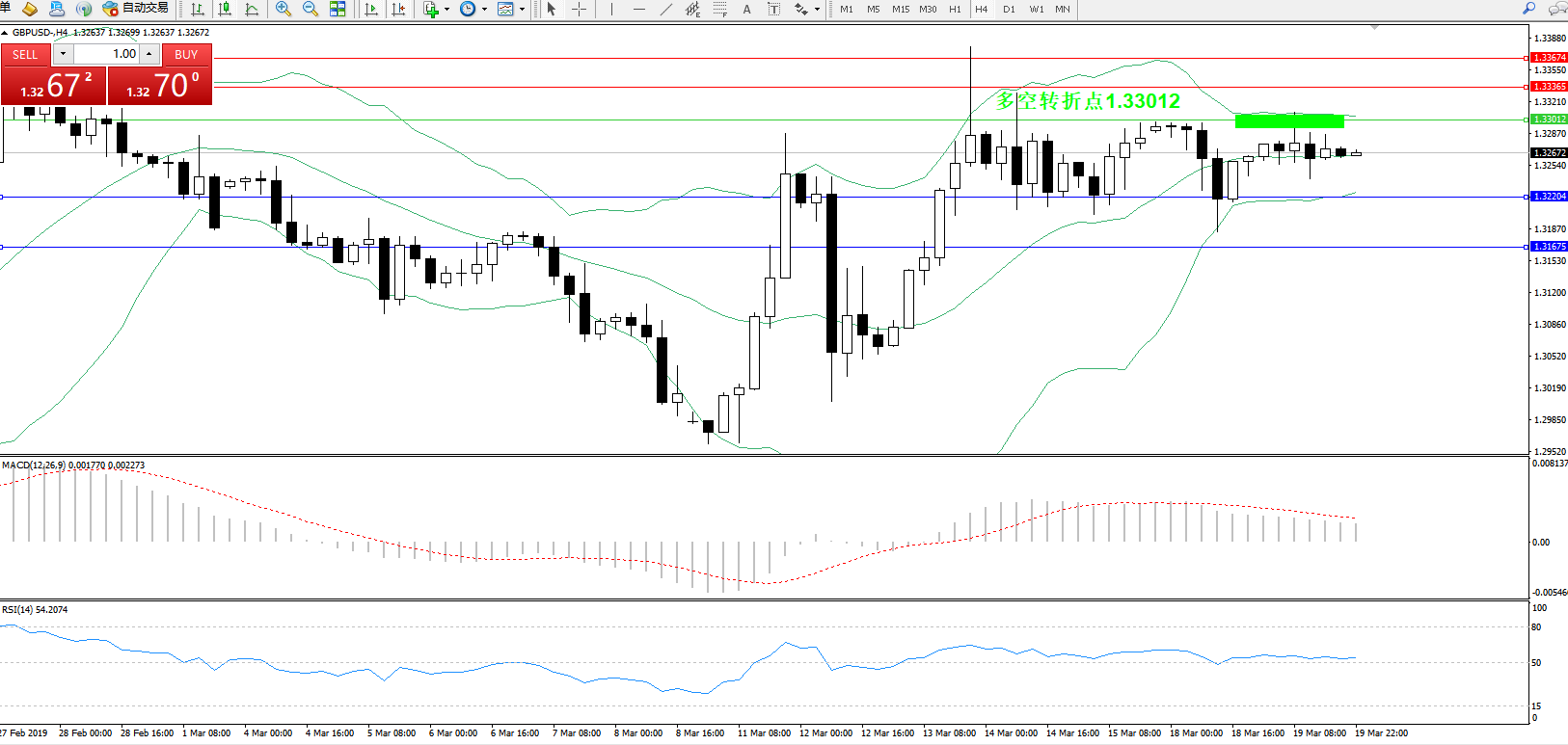 交易策略:1.33012下方看跌,目标1.32204、1.31675
