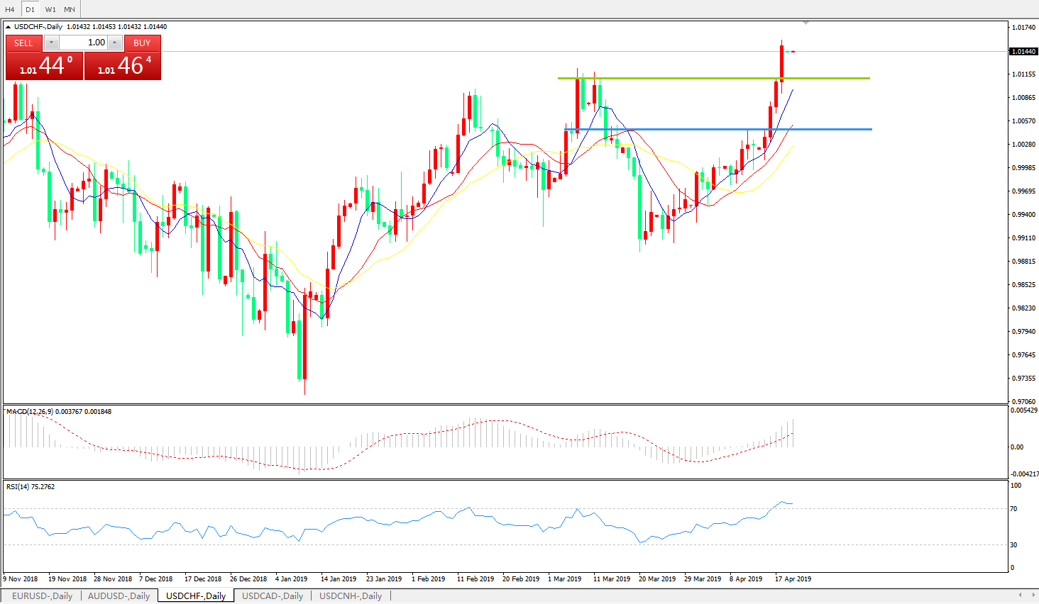 交易策略:1.0100上,看涨,目标价位 1.0160,然后为1.0250