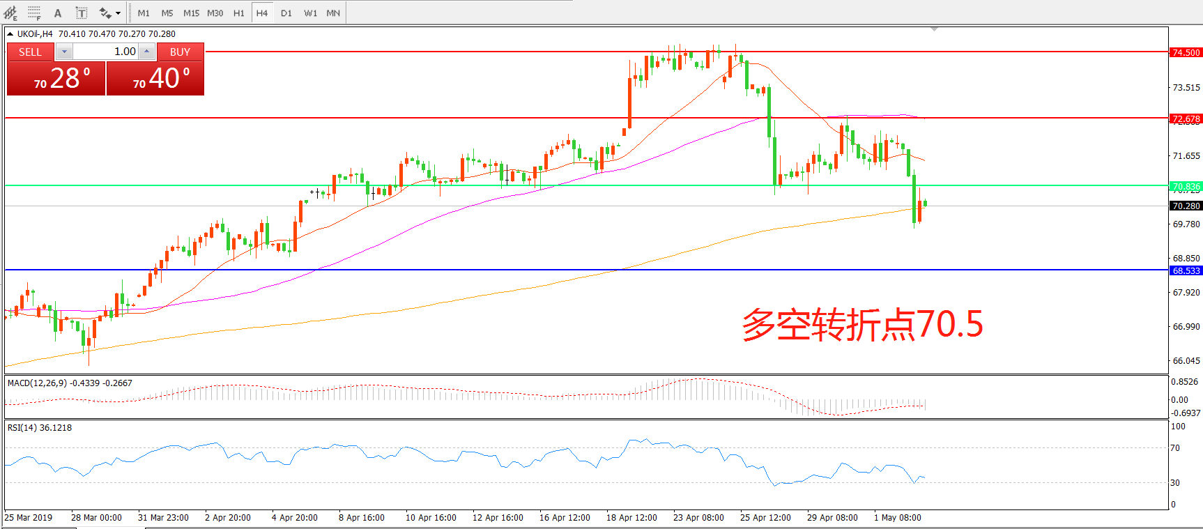 交易策略:在70.50之下看跌,目标68.50 66.00