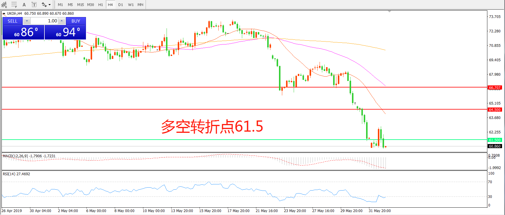 交易策略: 在61.50之下看跌,目标57.50 53.00