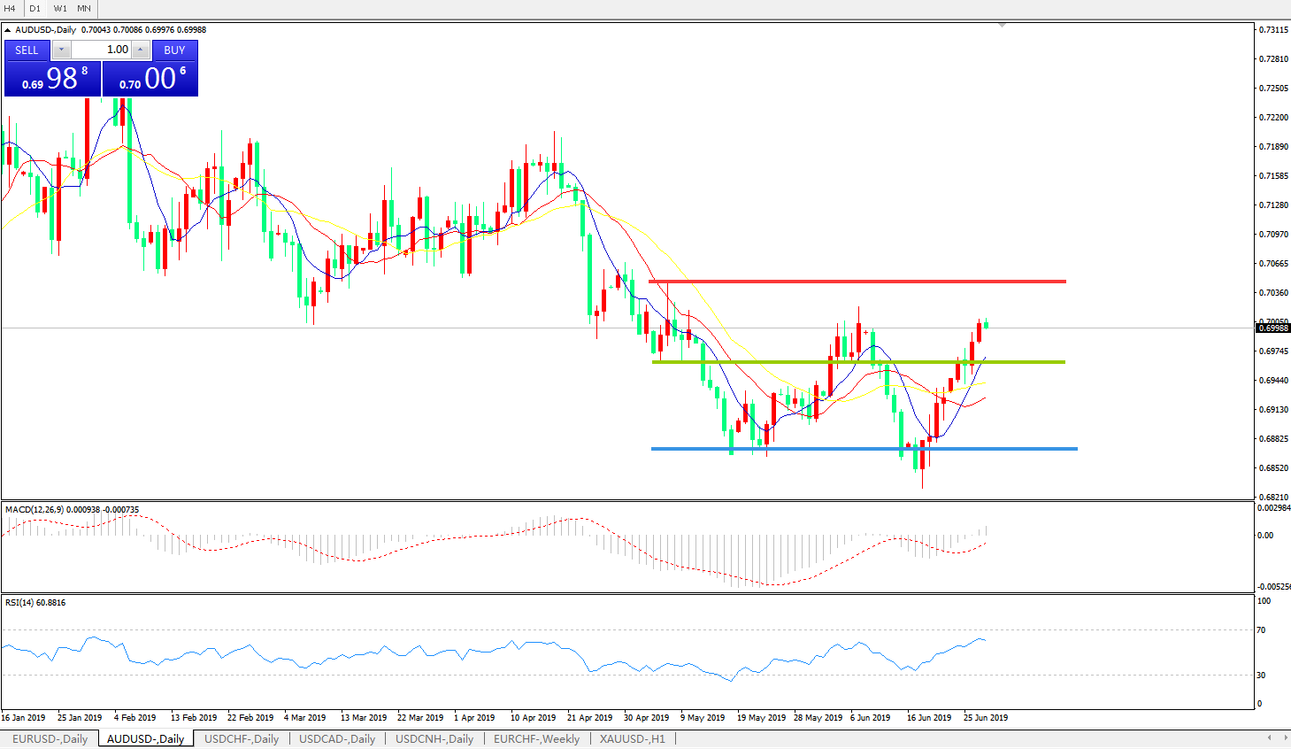 交易策略:0.6960上方看涨,目标0.7020、0.7100
