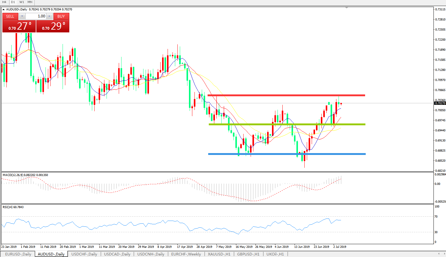 交易策略:0.6960上方看涨,目标0.7020、0.7100