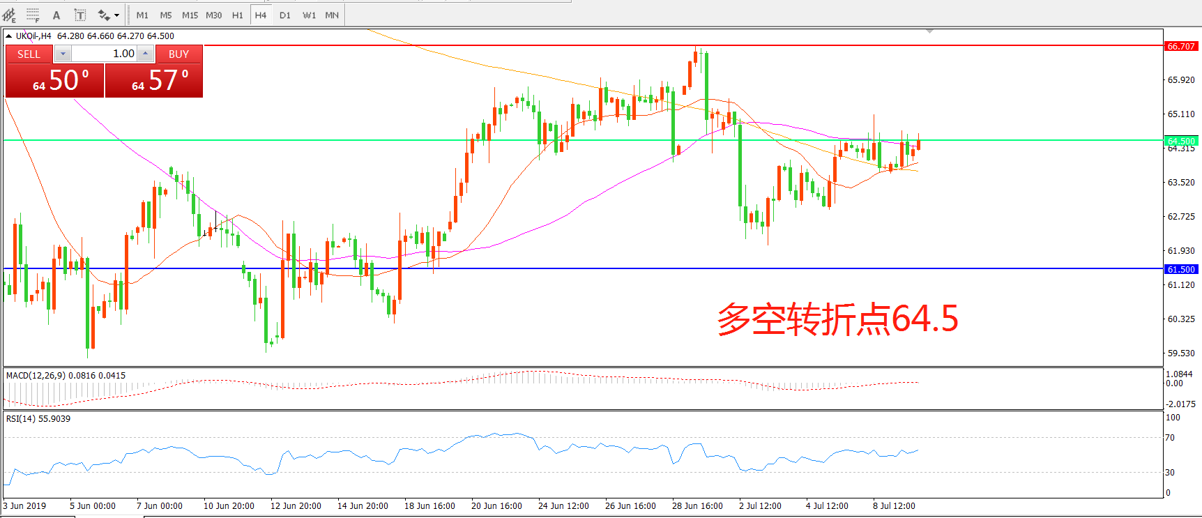 交易策略:在64.50之上看涨,目标66.70   70.00