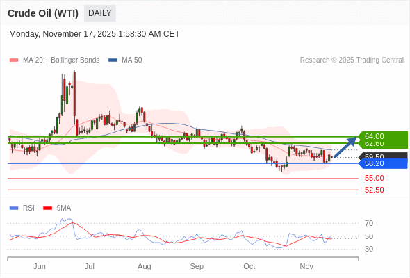 在 58.20 之上,看涨,目标价位为 62.60 ,然后为 64.00 。