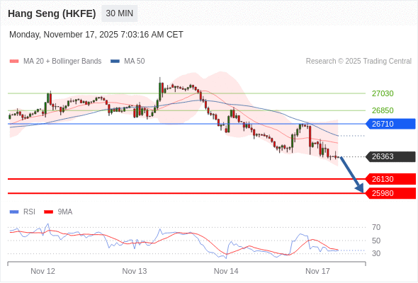 在 26710 之下,看跌,目标价位为 26130 ,然后为 25980 。