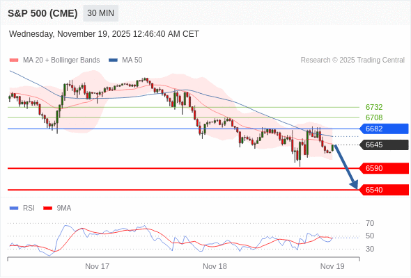 在 6682 之下,看跌,目标价位为 6590 ,然后为 6540 。