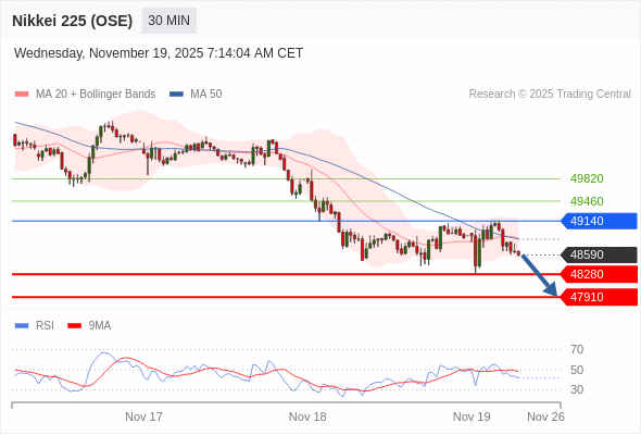 在 49140 之下,看跌,目标价位为 48280 ,然后为 47910 。