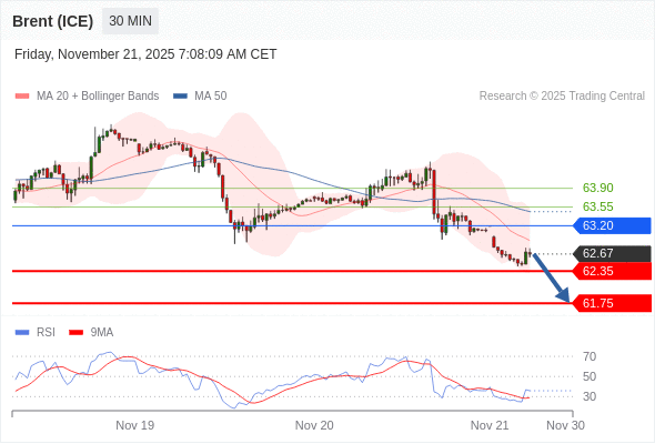 在 63.20 之下,看跌,目标价位为 62.35 ,然后为 61.75 。