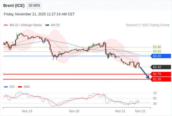 在 63.20 之下,看跌,目标价位为 61.75 ,然后为 61.35 。