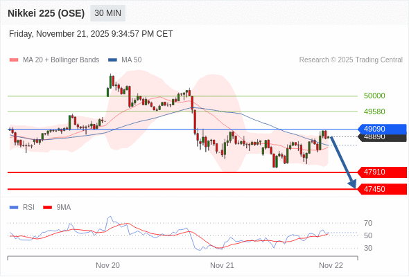 在 49090 之下,看跌,目标价位为 47910 ,然后为 47450 。