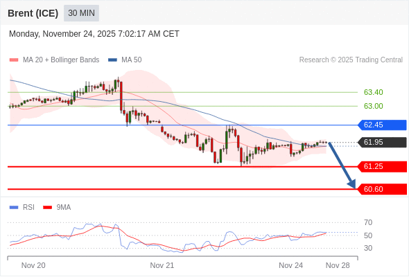 在 62.45 之下,看跌,目标价位为 61.25 ,然后为 60.60 。