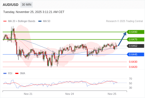 在 0.6445 之上,看涨,目标价位为 0.6475 ,然后为 0.6490 。