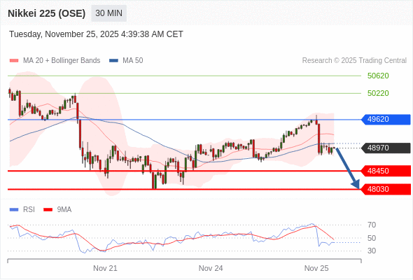 在 49620 之下,看跌,目标价位为 48450 ,然后为 48030 。