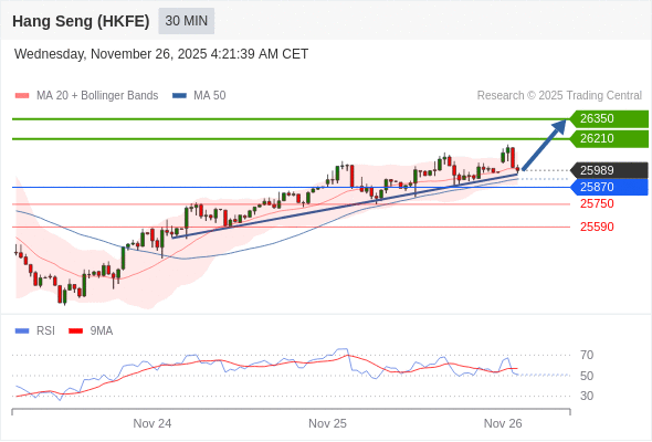 在 25870 之上,看涨,目标价位为 26210 ,然后为 26350 。