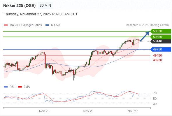 在 49750 之上,看涨,目标价位为 50350 ,然后为 50620 。