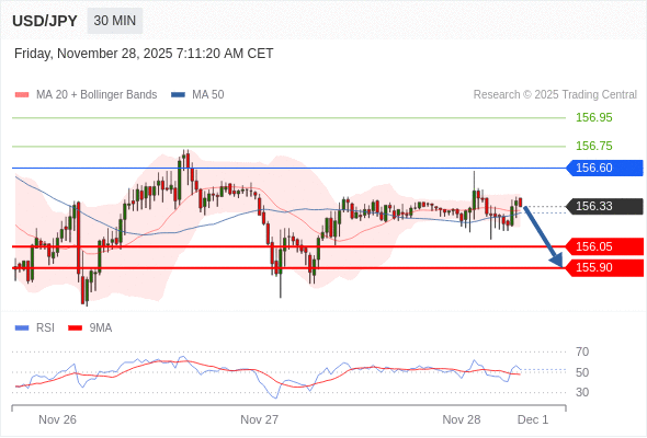 在 156.60 之下,看跌,目标价位为 156.05 ,然后为 155.90 。