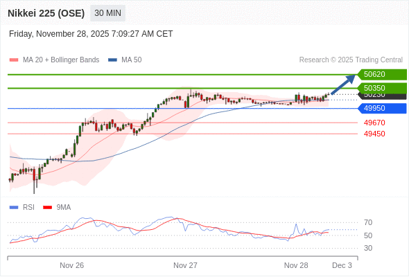 在 49950 之上,看涨,目标价位为 50350 ,然后为 50620 。