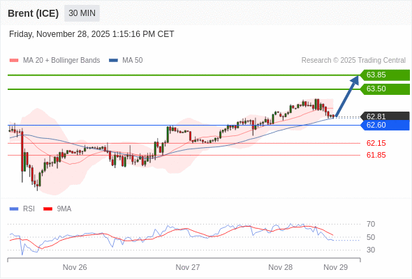 在 62.60 之上,看涨,目标价位为 63.50 ,然后为 63.85 。