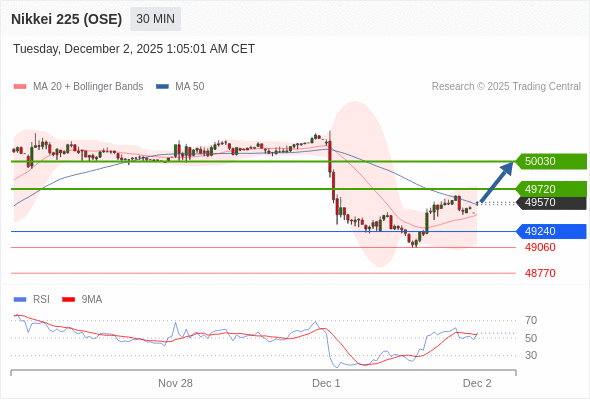 在 49240 之上,看涨,目标价位为 49720 ,然后为 50030 。