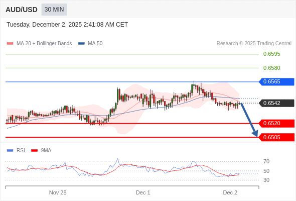 在 0.6565 之下,看跌,目标价位为 0.6520 ,然后为 0.6505 。