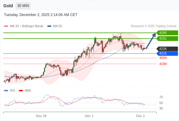 在 4215 之上,看涨,目标价位为 4251 ,然后为 4265 。