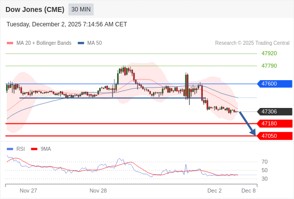 在 47600 之下,看跌,目标价位为 47180 ,然后为 47050 。