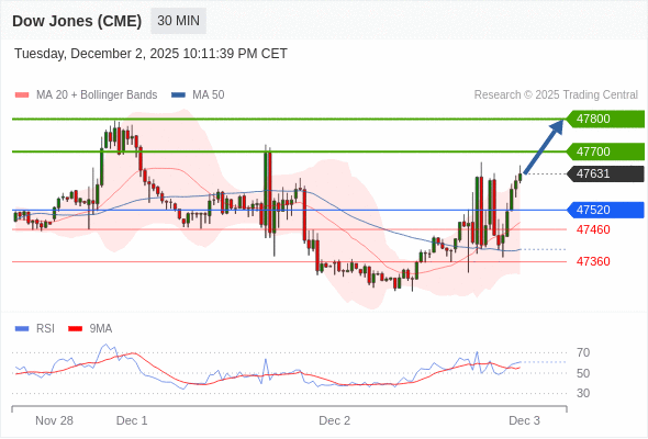 在 47520 之上,看涨,目标价位为 47700 ,然后为 47800 。