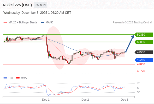 在 49250 之上,看涨,目标价位为 50030 ,然后为 50350 。