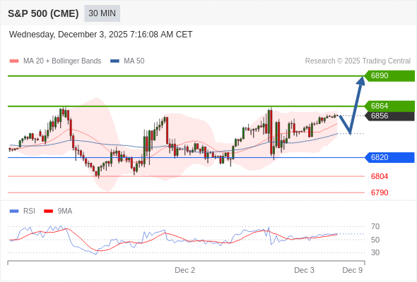 在 6820 之上,看涨,目标价位为 6864 ,然后为 6890 。