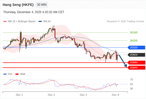 交易策略: 在 25920 之下,看跌,目标价位为 25680 ,然后为 25600 。