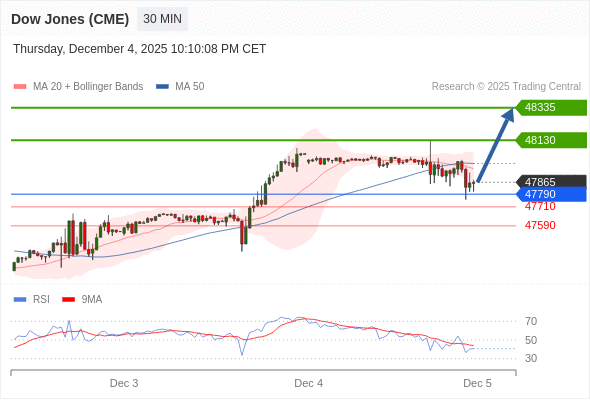 在 47790 之上,看涨,目标价位为 48130 ,然后为 48335 。