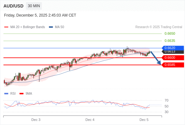 在 0.6620 之下,看跌,目标价位为 0.6600 ,然后为 0.6585 。