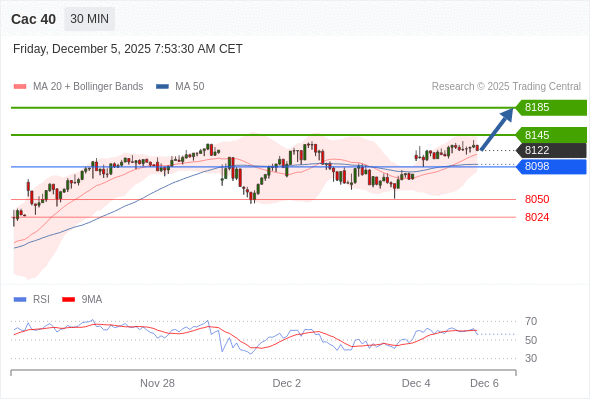 在 8098 之上,看涨,目标价位为 8145 ,然后为 8185 。