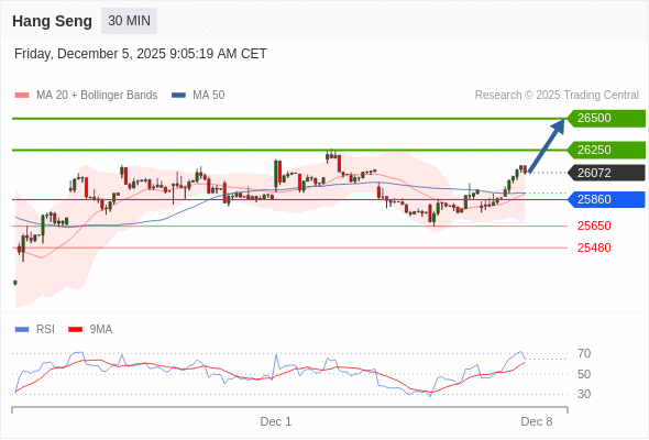 在 25860 之上,看涨,目标价位为 26250 ,然后为 26500 。