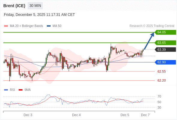 在 62.90 之上,看涨,目标价位为 63.65 ,然后为 64.05 。