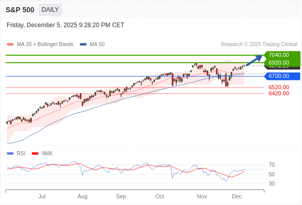 S&P 500 短线: 在6700.00之上,看涨。