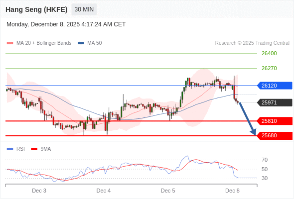 在 26120 之下,看跌,目标价位为 25810 ,然后为 25680 。