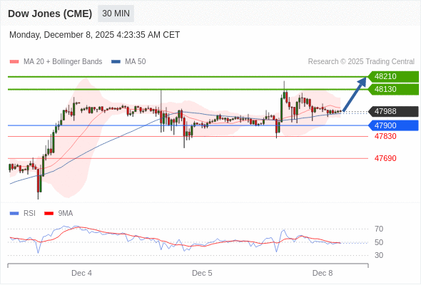 在 47900 之上,看涨,目标价位为 48130 ,然后为 48210 。