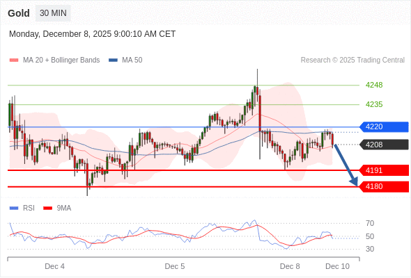 在 4220 之下,看跌,目标价位为 4191 ,然后为 4180 。