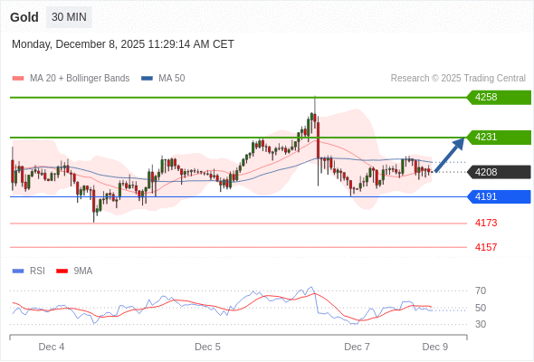 在 4191 之上,看涨,目标价位为 4231 ,然后为 4258 。