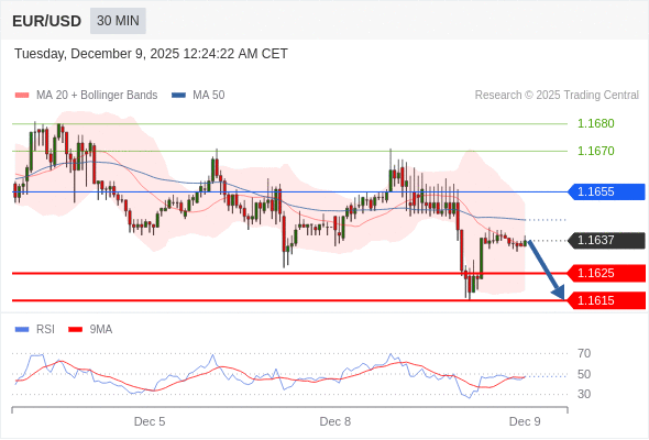 在 1.1655 之下,看跌,目标价位为 1.1625 ,然后为 1.1615 。