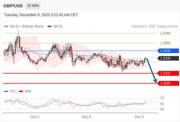 在 1.3345 之下,看跌,目标价位为 1.3300 ,然后为 1.3280 。