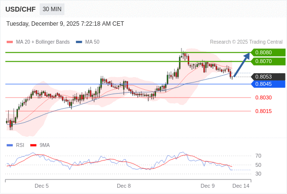 在 0.8045 之上,看涨,目标价位为 0.8070 ,然后为 0.8080 。