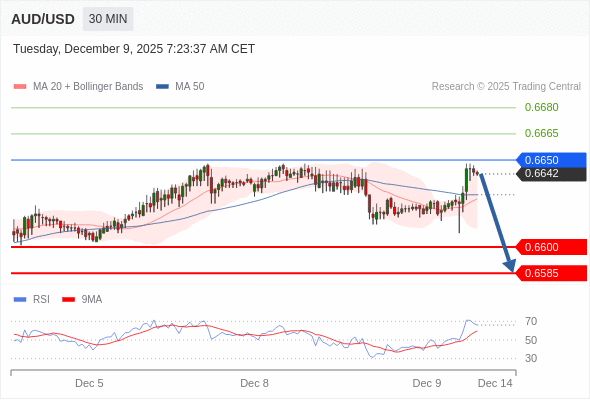 在 0.6650 之下,看跌,目标价位为 0.6600 ,然后为 0.6585 。