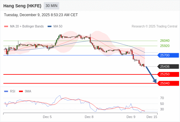 在 25700 之下,看跌,目标价位为 25250 ,然后为 25040 。
