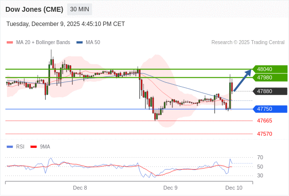 在 47750 之上,看涨,目标价位为 47980 ,然后为 48040 。