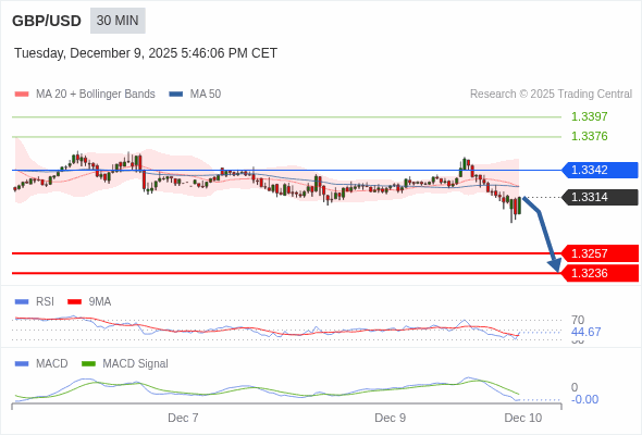 英镑/美元 当日内 : 看跌,在 1.3342 之下。